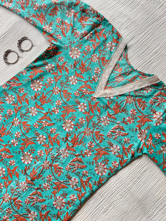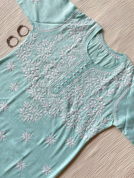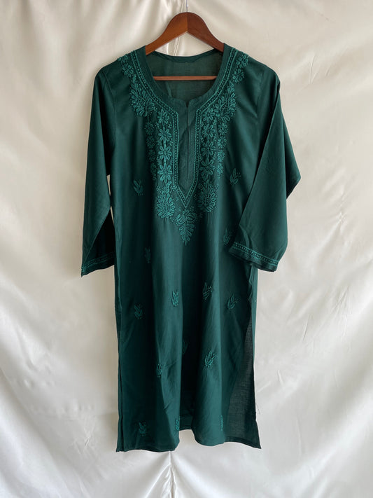 Potli Button Cotton Chikankari Kurta( Sea Green)