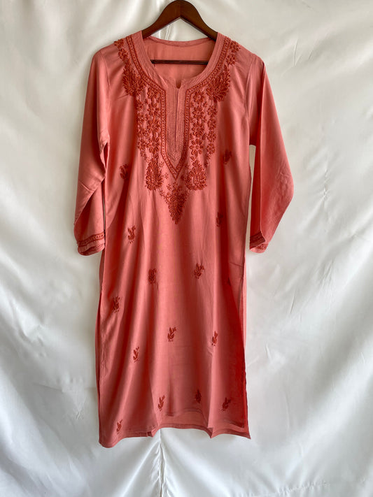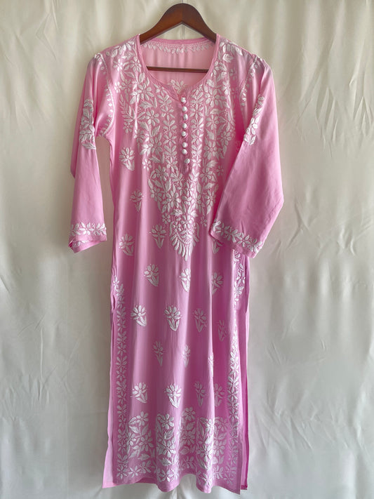 Mahira Modal Long Chikankari Kurti ( Pink )