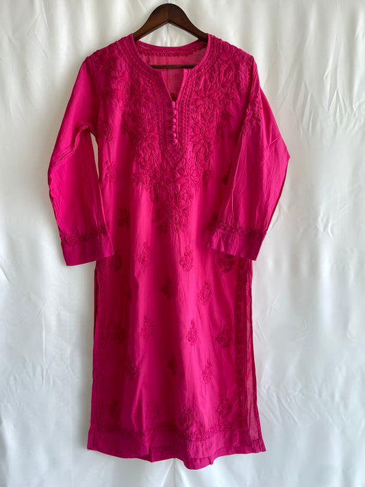 Cotton Potli Button Chikankari Kurti (Hot Pink)