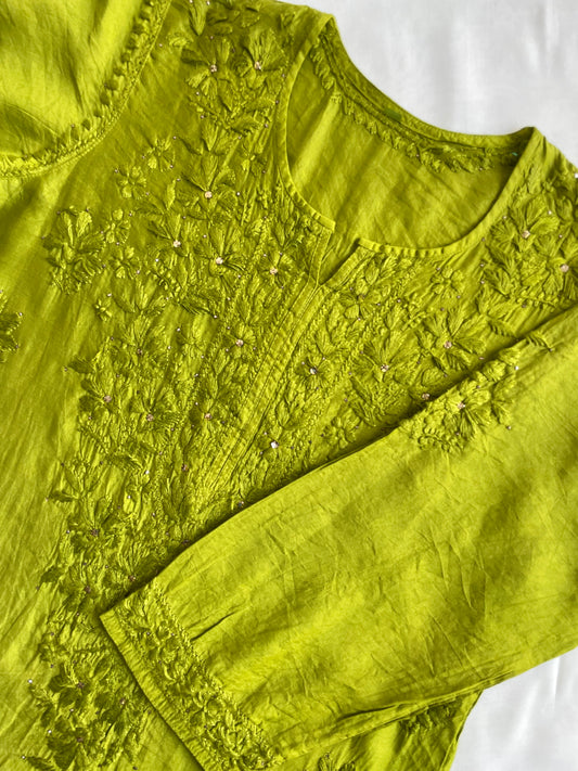 Hayat Mukaish Chanderi Chikankari Kurti (Green)