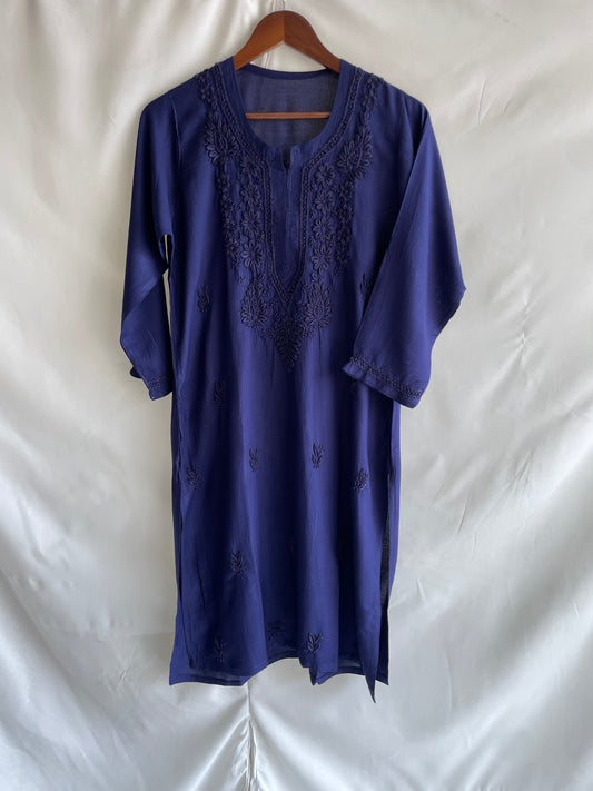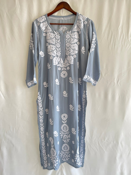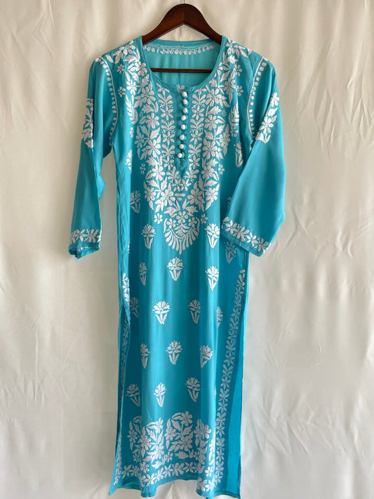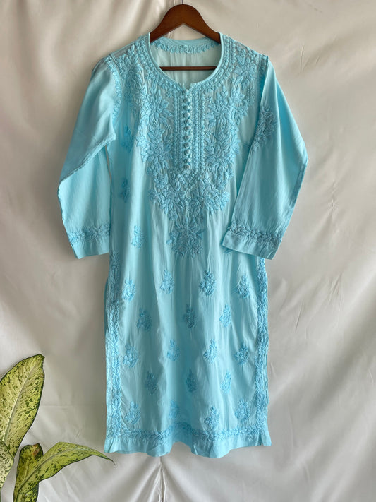 Mahira Modal Long Chikankari Kurti(Sky Blue)