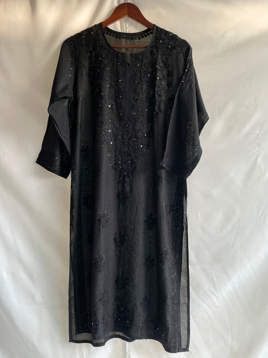 Hayat Mukaish Chanderi Chikankari Kurti (Black)