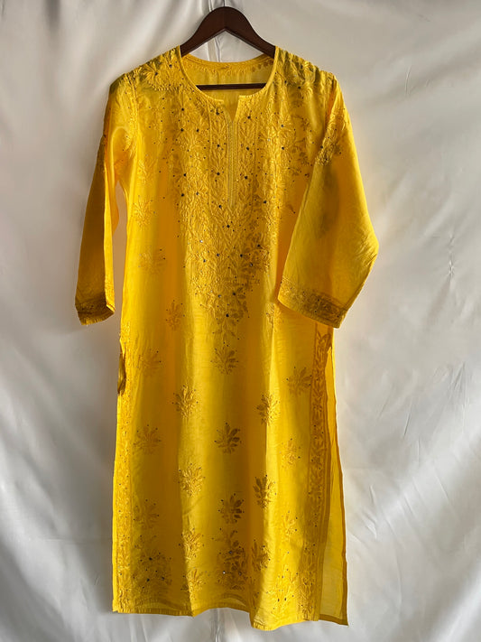 Hayat Chanderi Chikankari Kurti ( Yellow)
