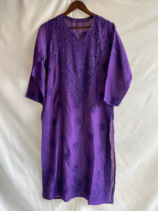 Hayat Mukaish Chanderi chikankari Kurti( Purple)