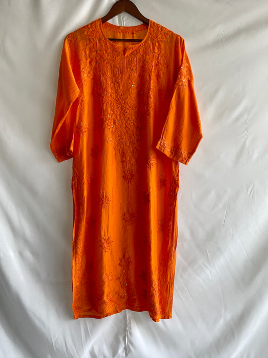 Hayat Mukaish Chanderi Chikankari Kurti (Orange)