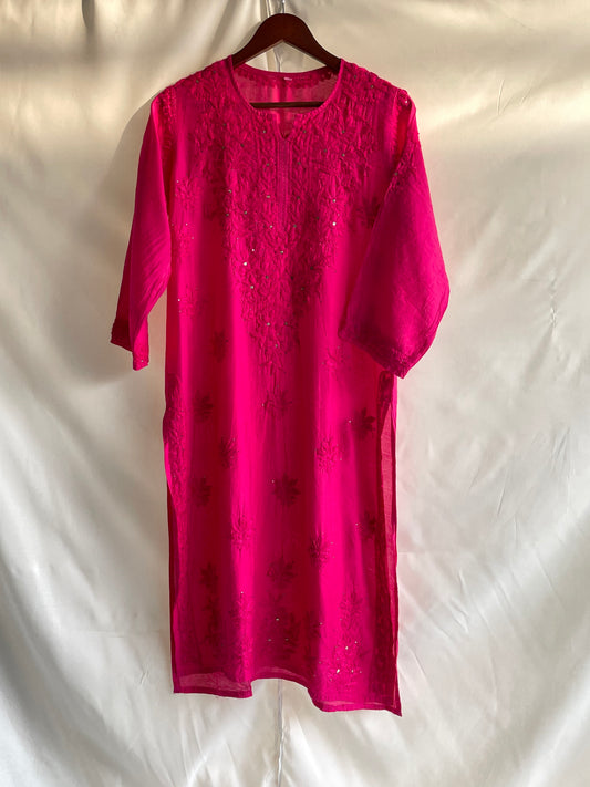 Hayat Mukaish Chanderi Chikankari Kurti ( Hot Pink)