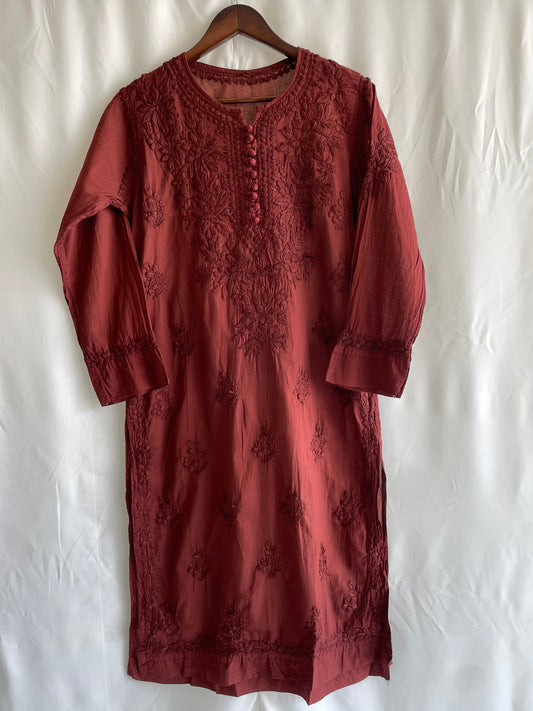 Cotton Potli Button Chikankari Kurti ( Chocolate Brown )