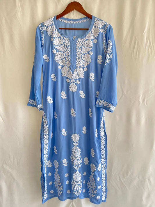 Naira Modal Long Chikankari Kurta (Powder Blue)