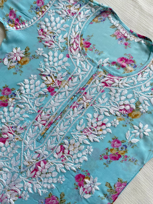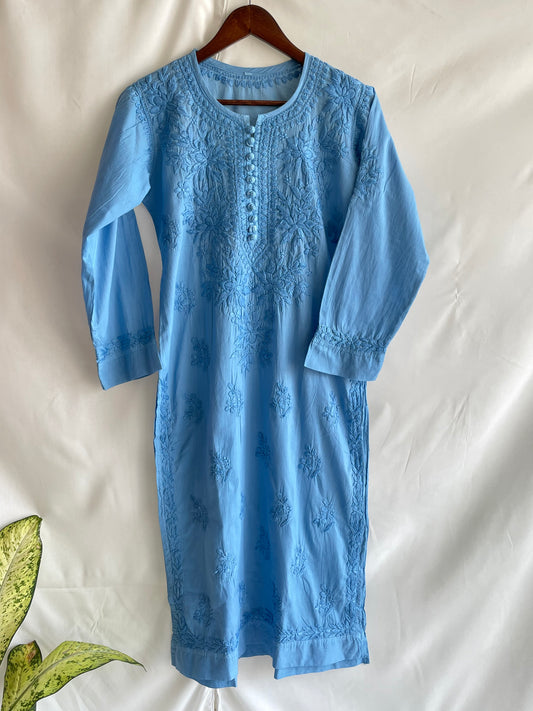 Rida Modal Long Chikankari kurta (Sky Blue)