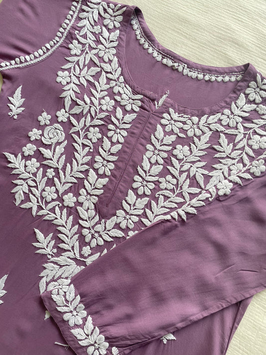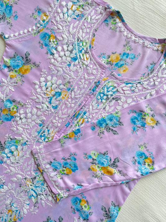 Rida Modal Long Chikankari Kurti ( Lavender)
