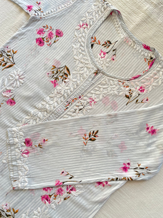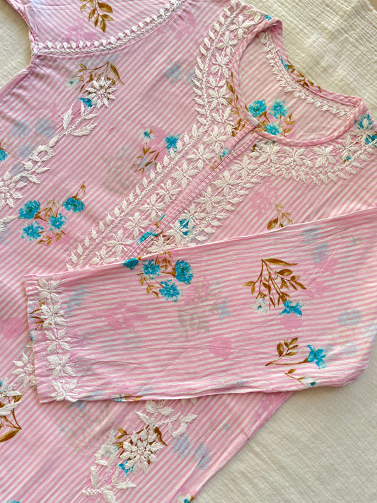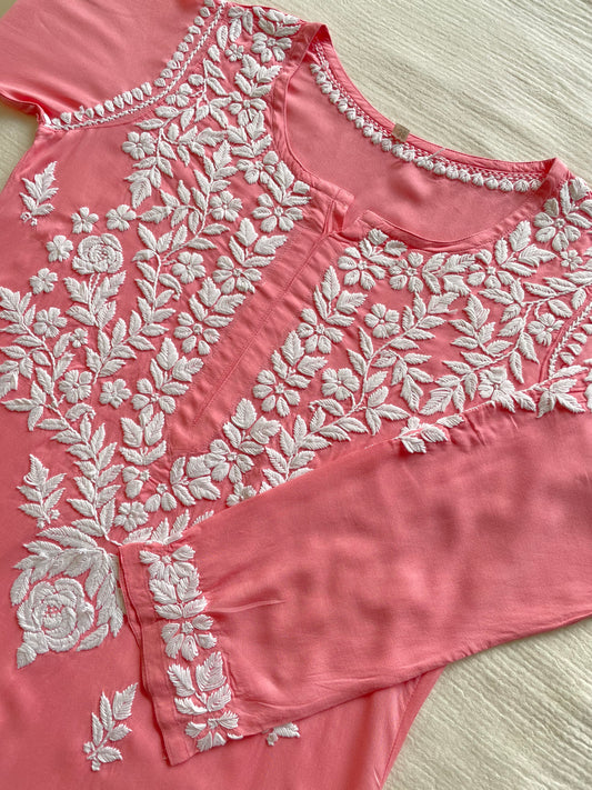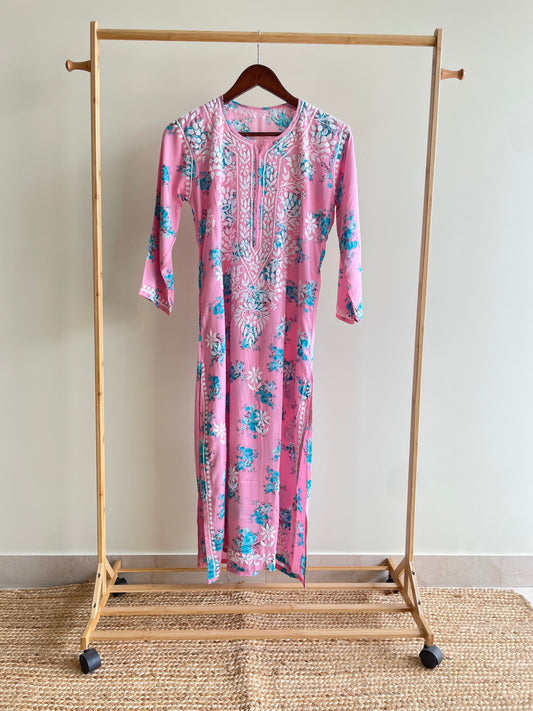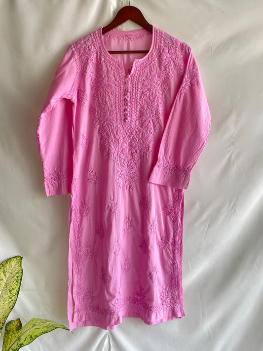 Sara Mul Mul Long chikankari Kurti(Pink)