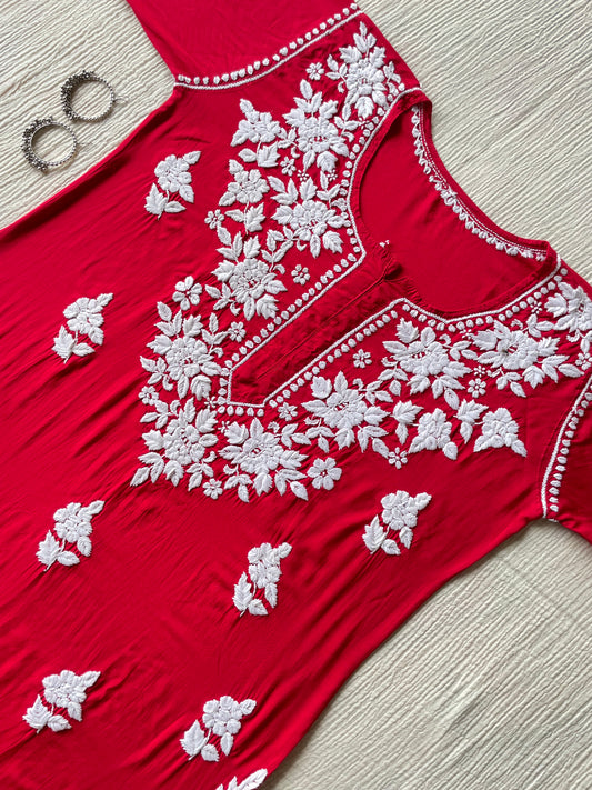 -12% OFFGul Modal Chikankari Kurta(Red)