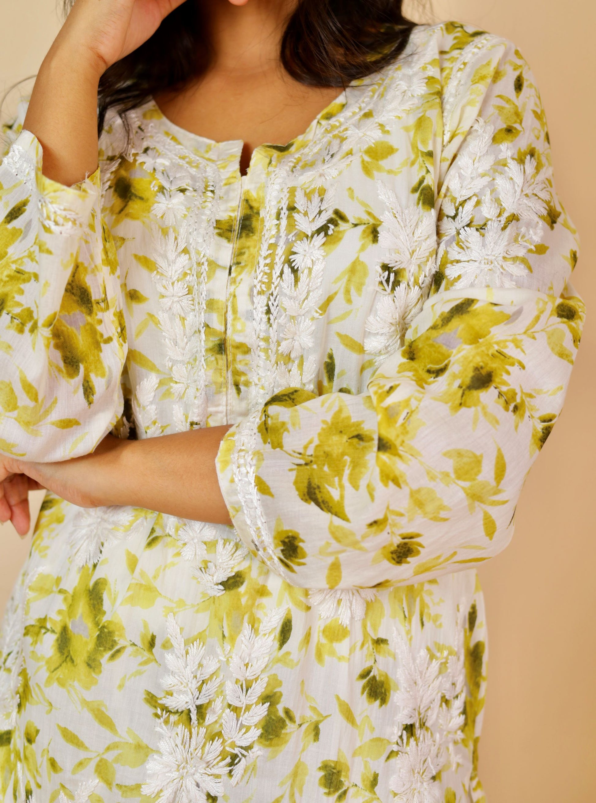 Aisha Mul Long Chikankari Kurti ( Light Green)