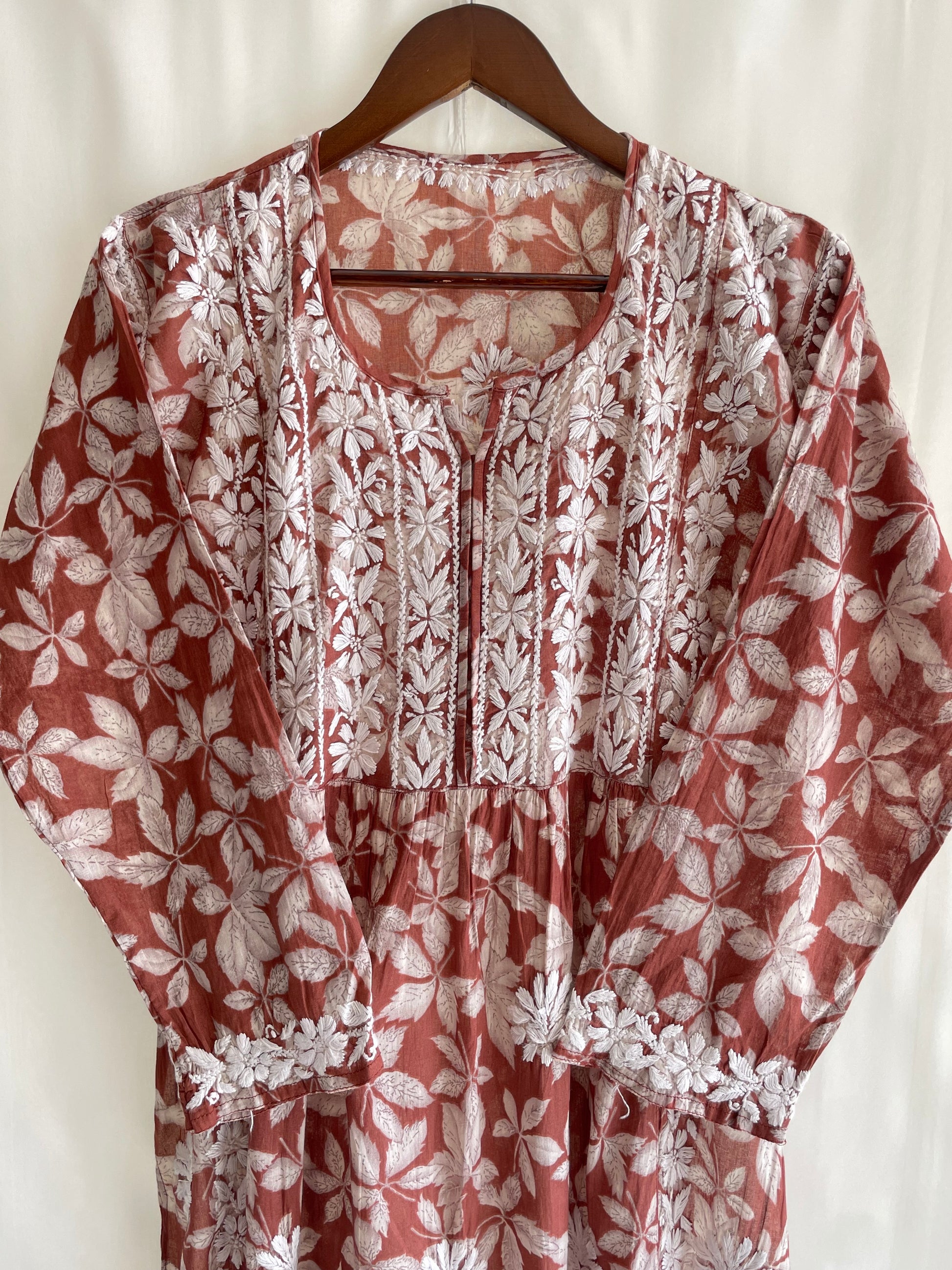 Aiza Naira cut Long Chikankari Kurta ( Rust Brown)