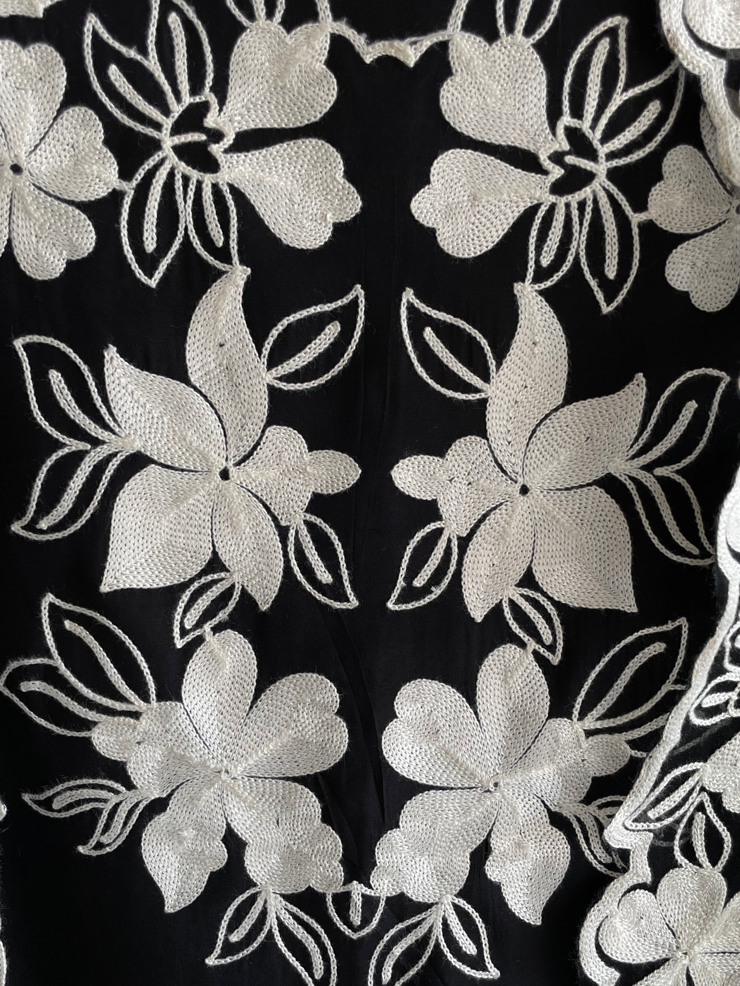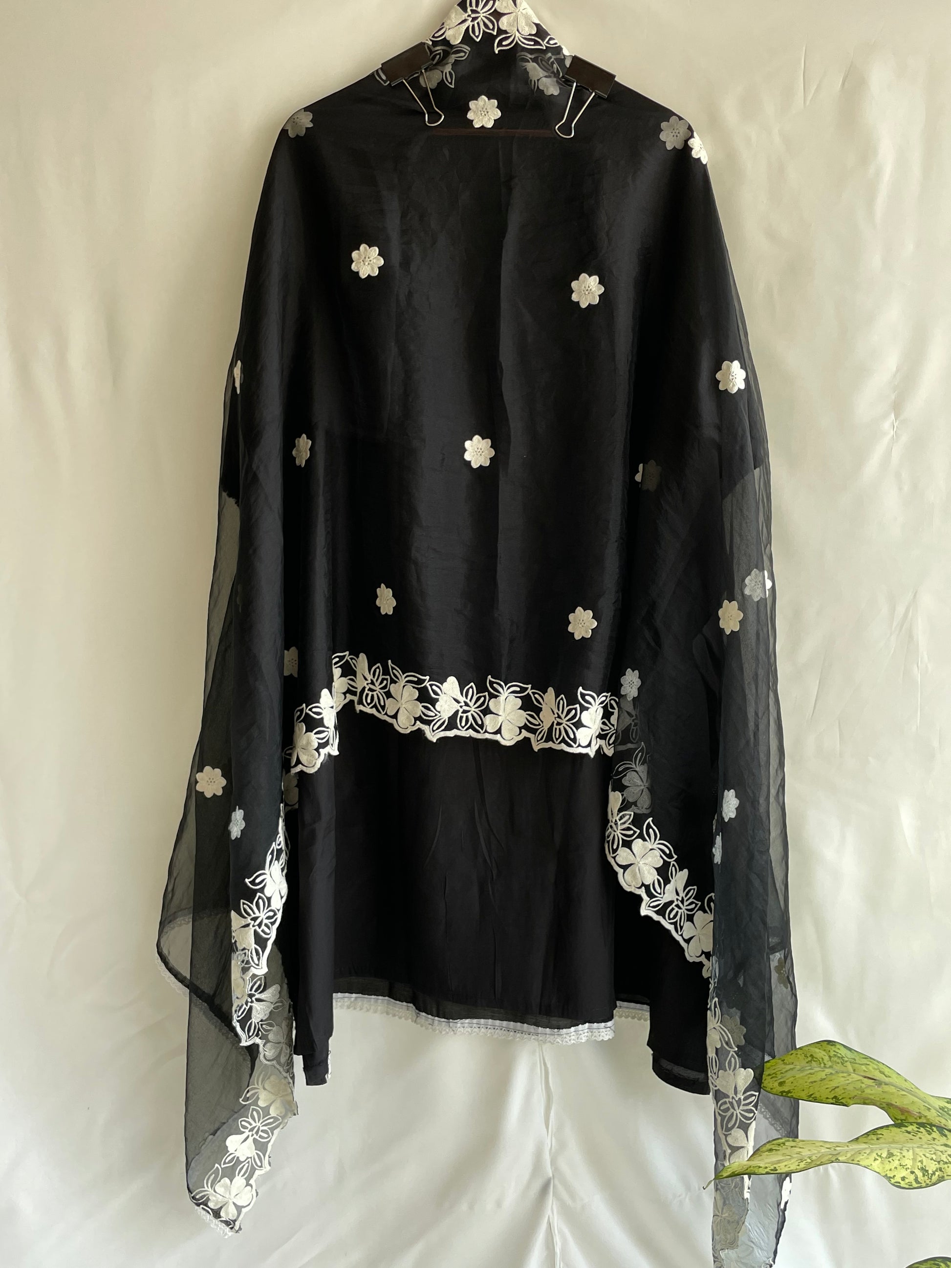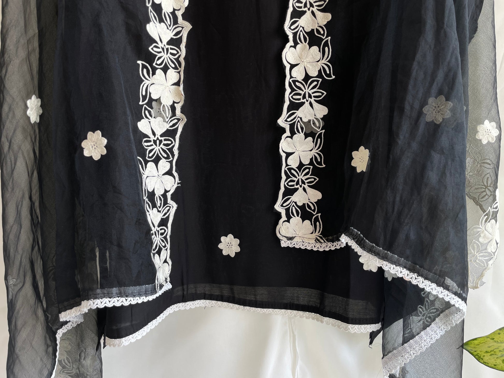 Black Unstitched Machine Embroidered suit set with Designer Dupatta