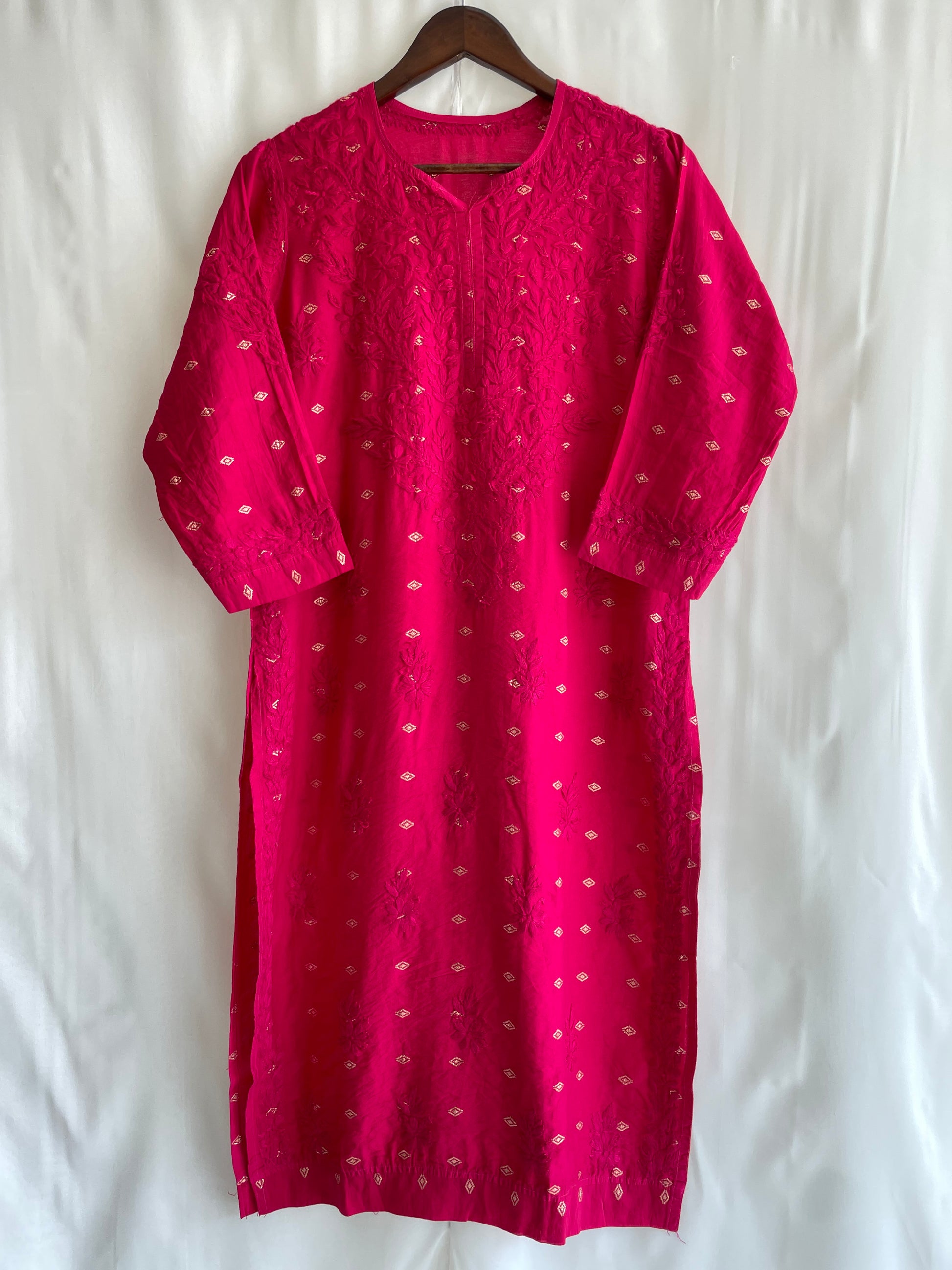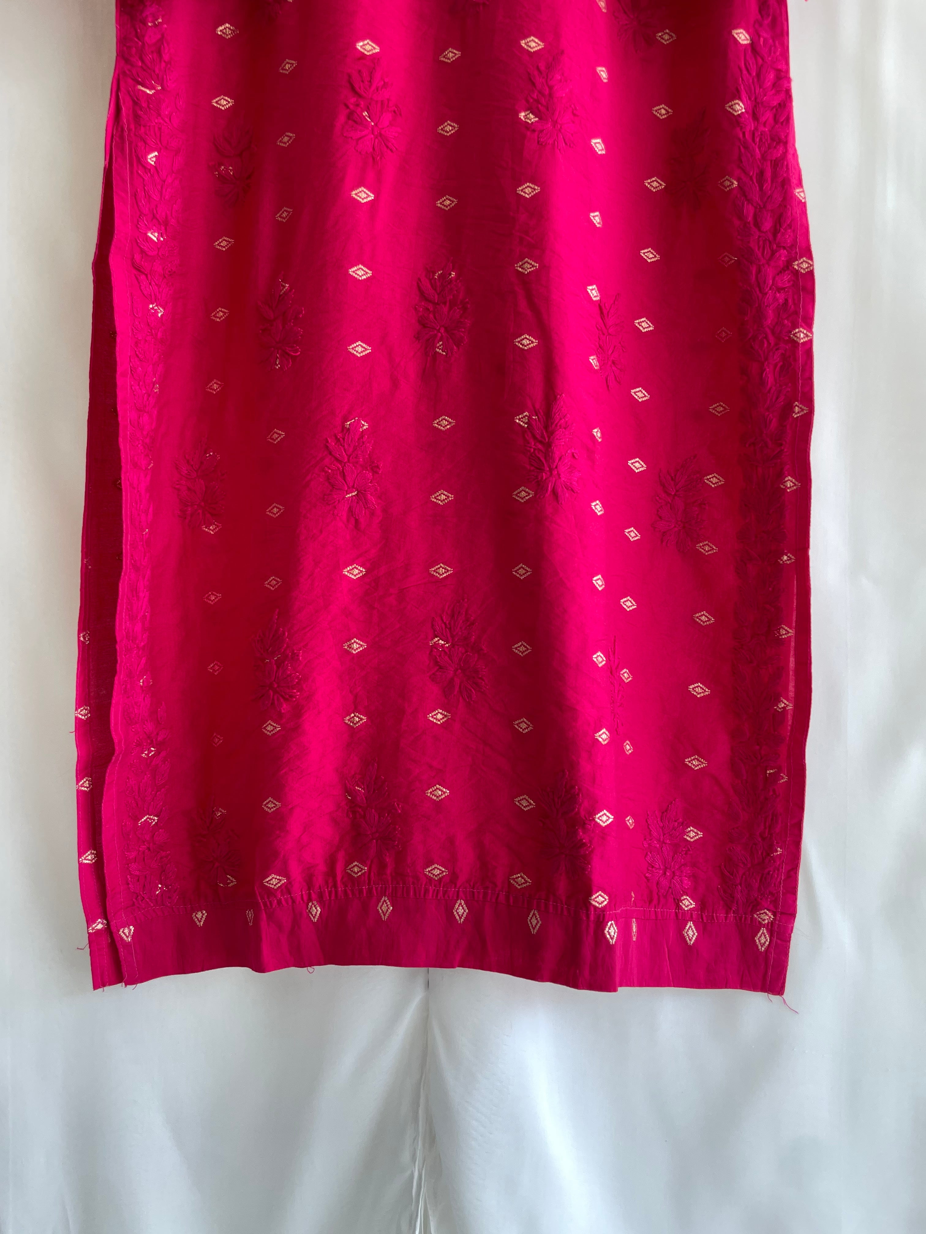 Inaya Long Chiknkari Kurti (Hot Pink)