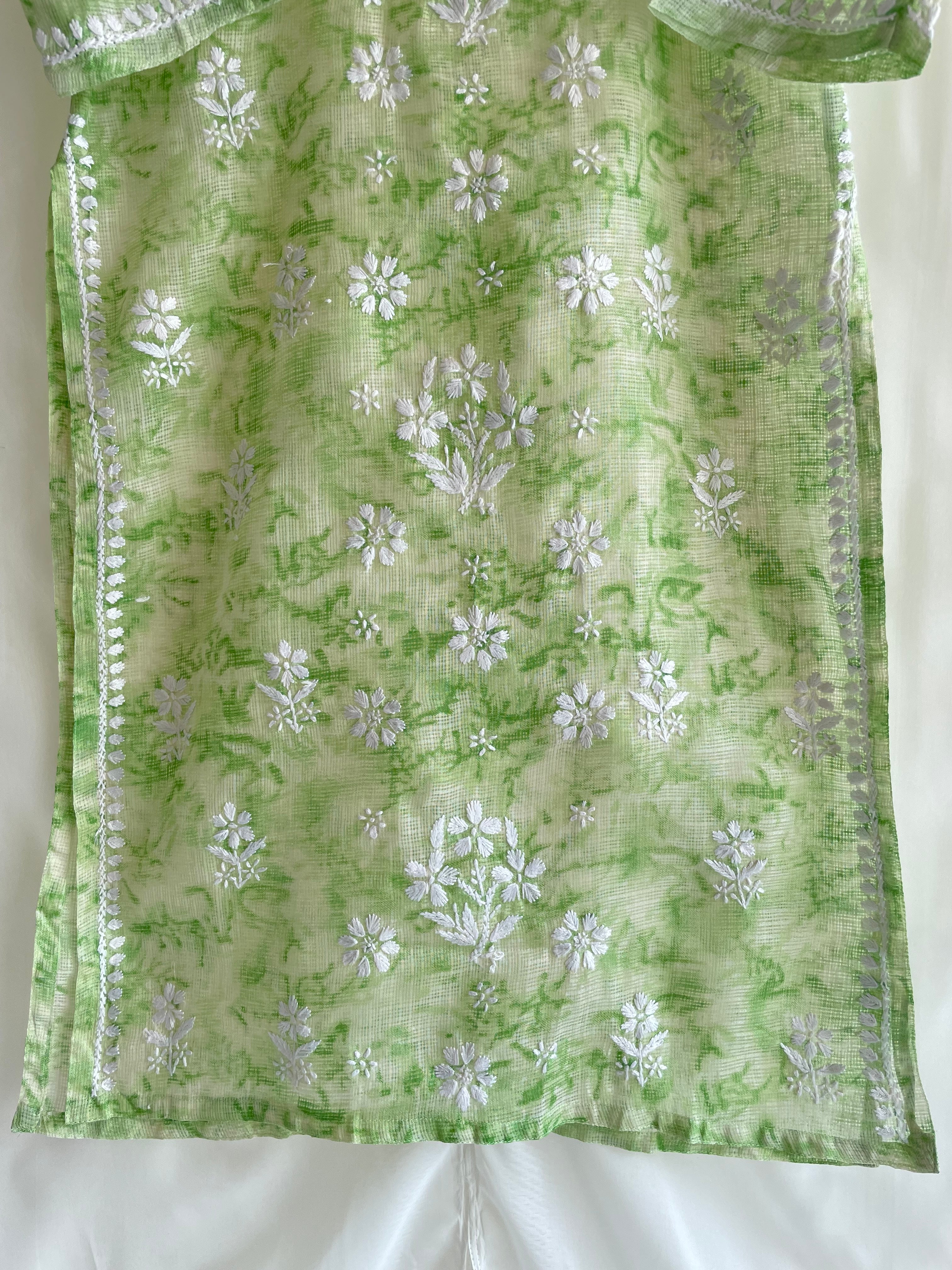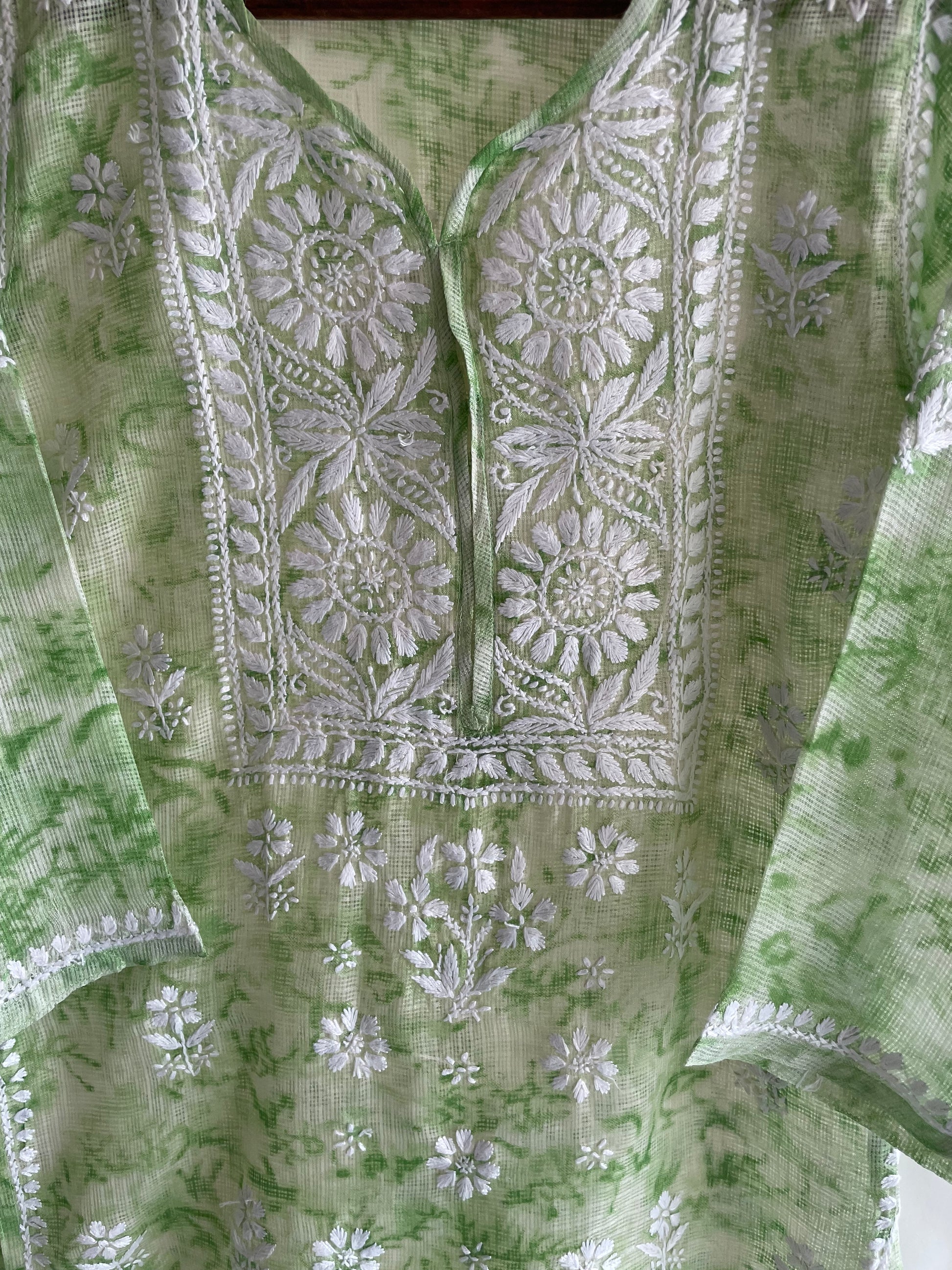 Kota Shibori Long Chikankari Kurti (Pista Green)