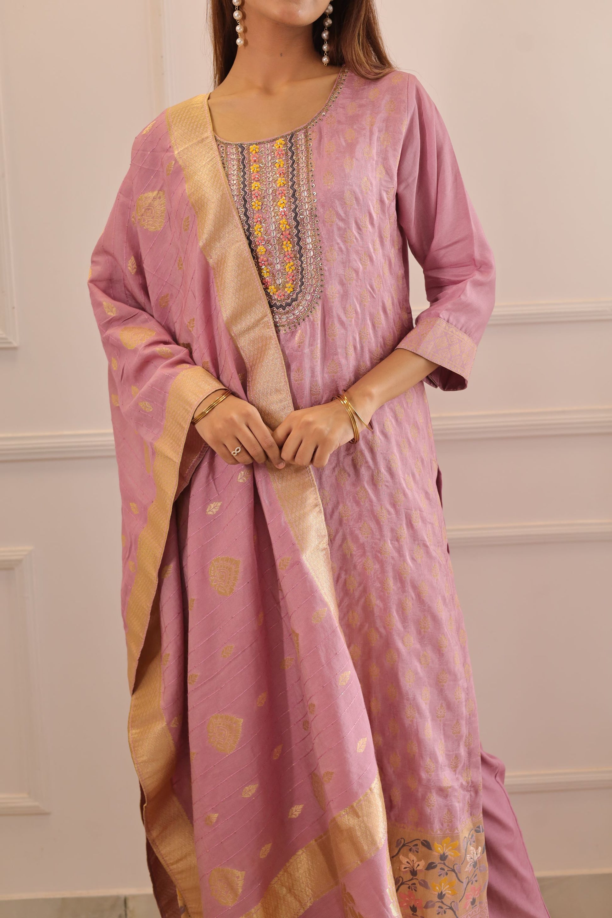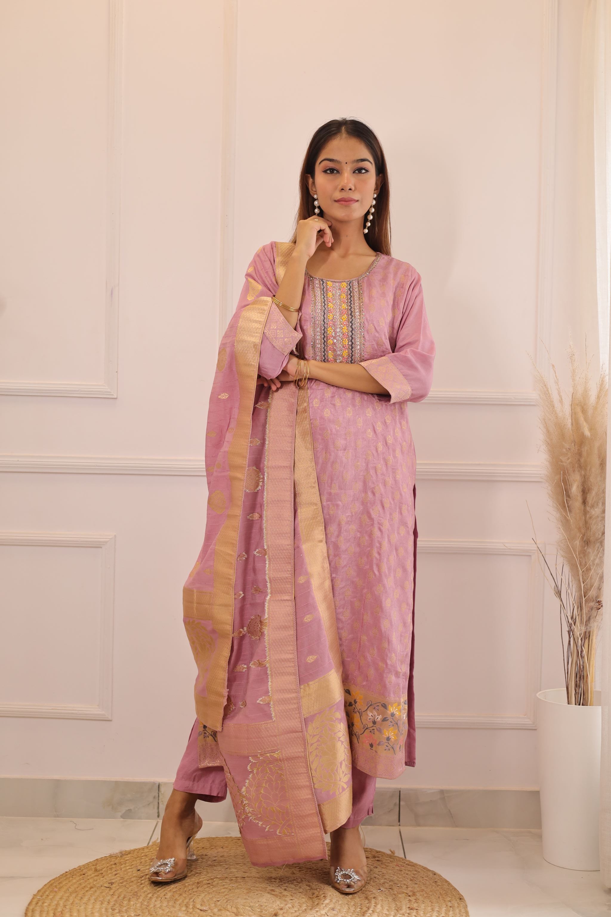 Lilac Banarsi Work inspired suit set (Lilac) - set of 3