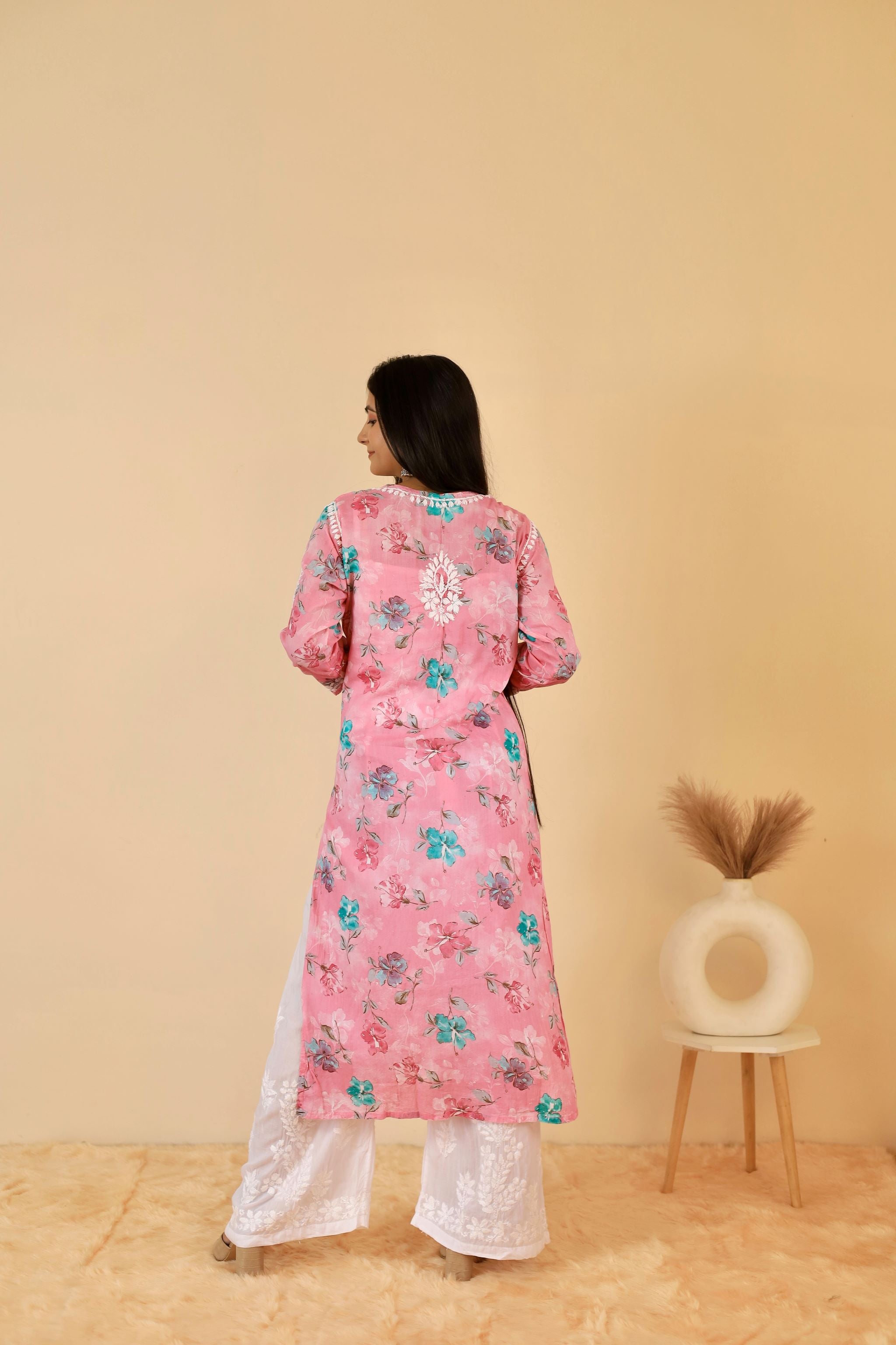 Rahat Long Mul Chukankari Kurti ( Pink)