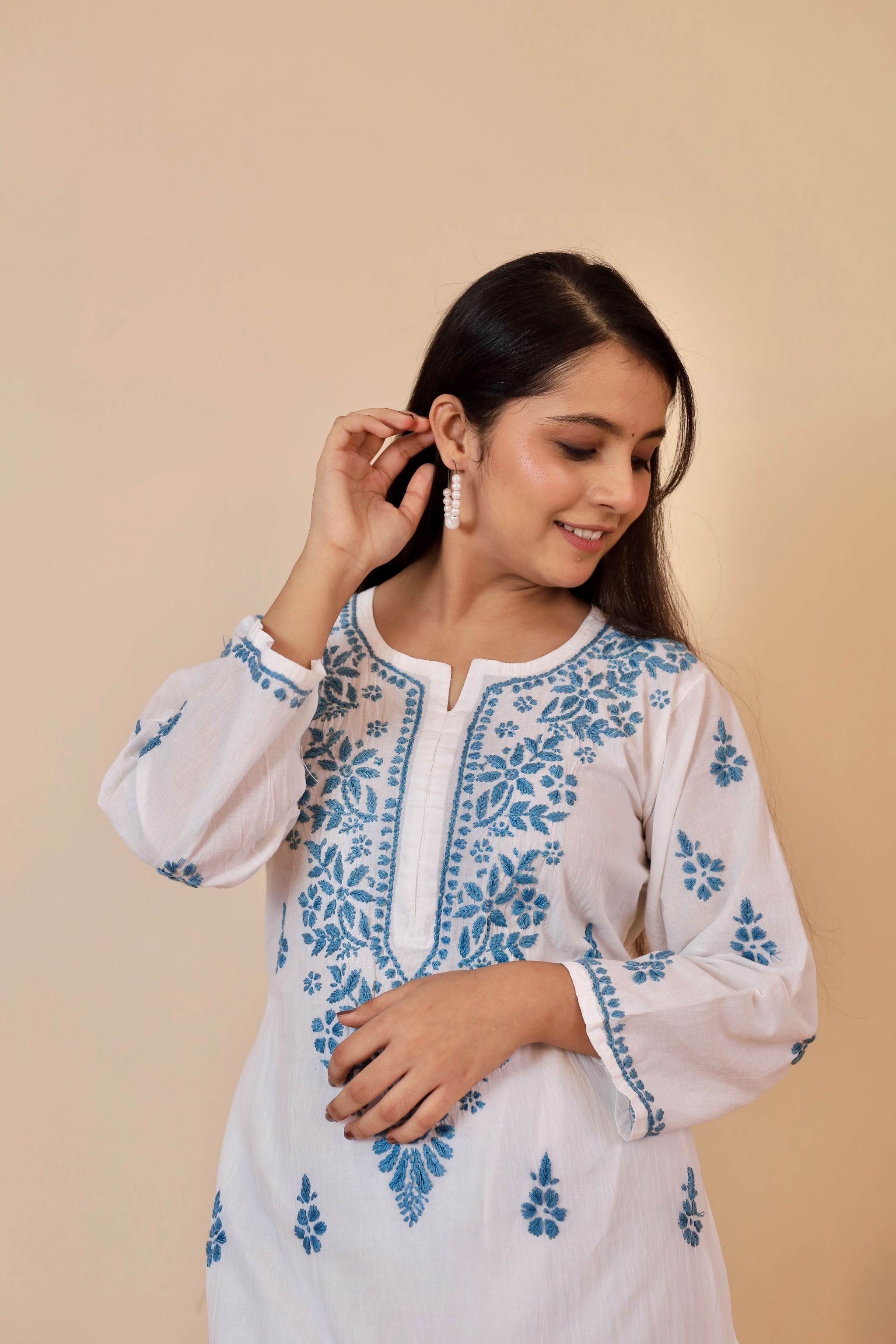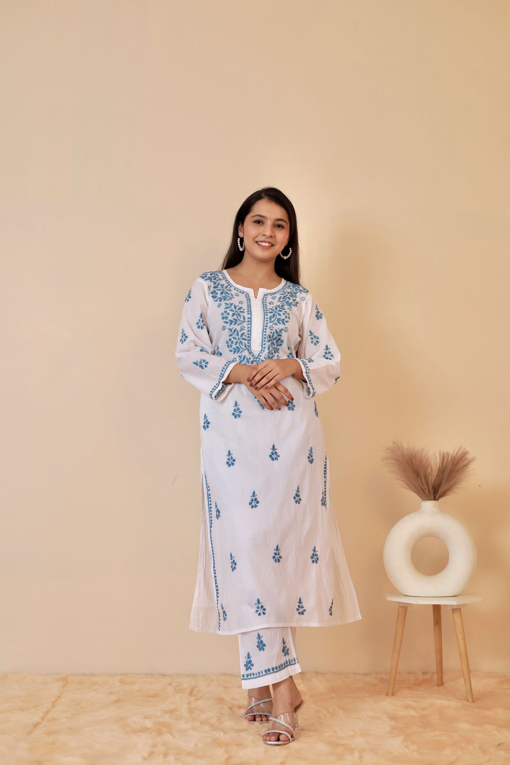 Heba cotton Chikankari Kurti and palazzo set ( Sky Blue )