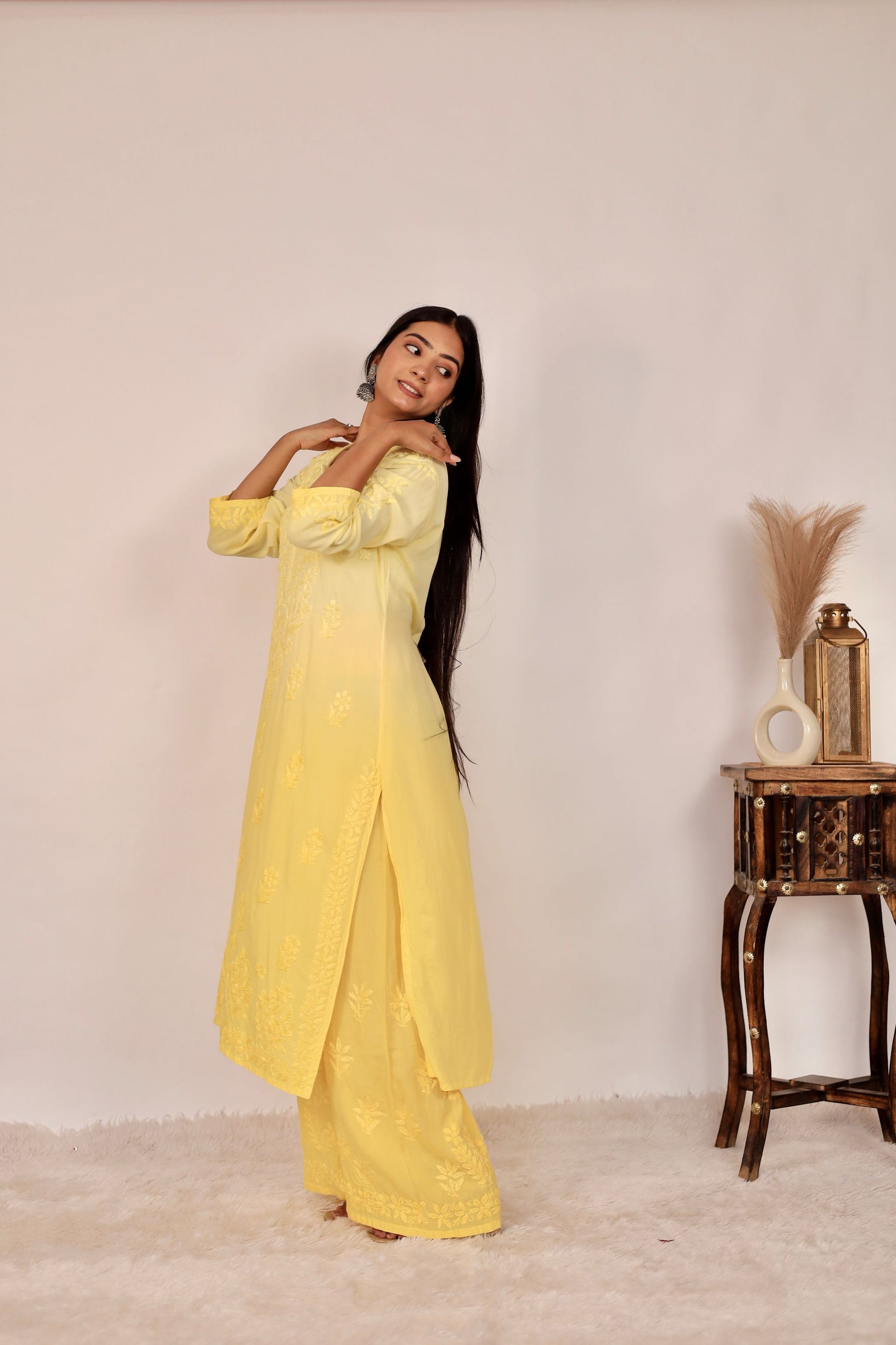 Riya Premium Modal Chikankari Kurti and Palazzo set ( Yellow)