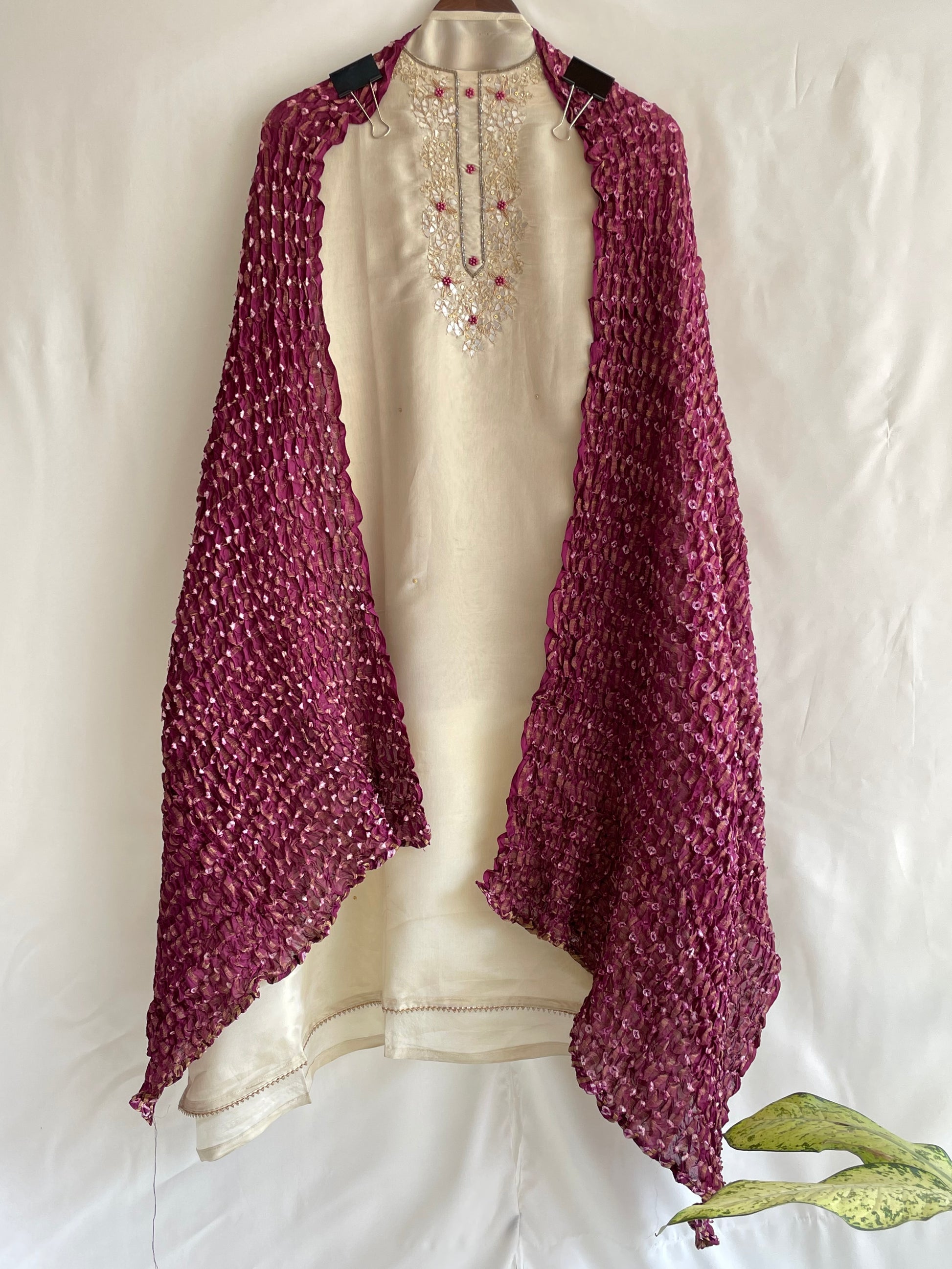 Shimmer silk Unstitched suit set with beautiful Bandhani Crushed dupatta