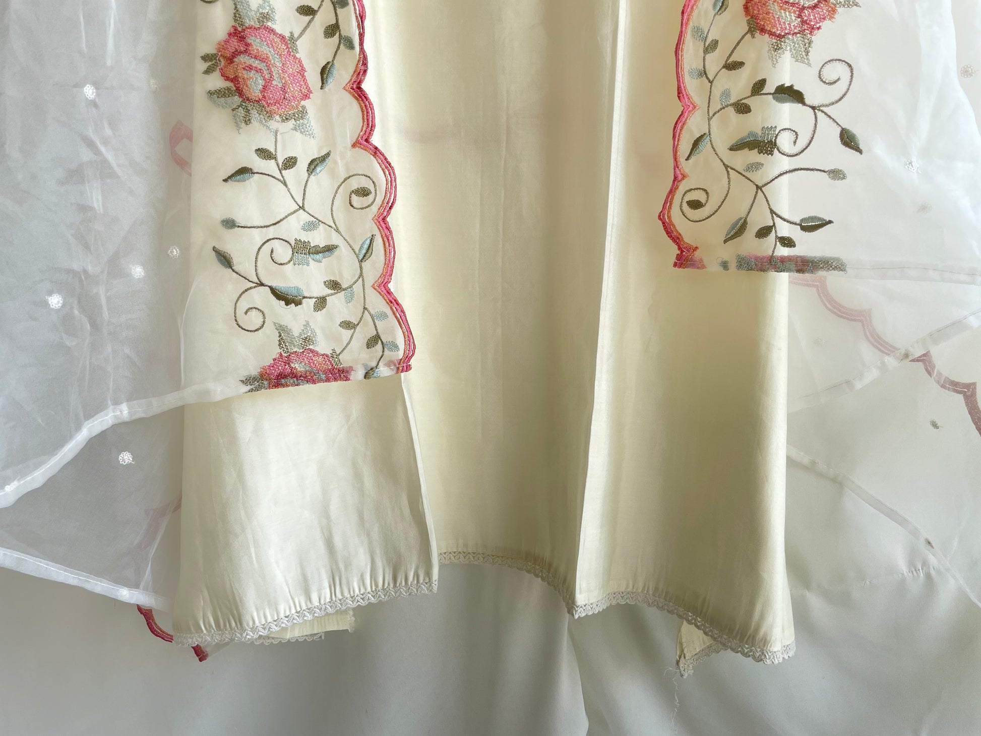 White Unstitched suit set with cut dana work on neck and Beautiful Embroidered Dupatta