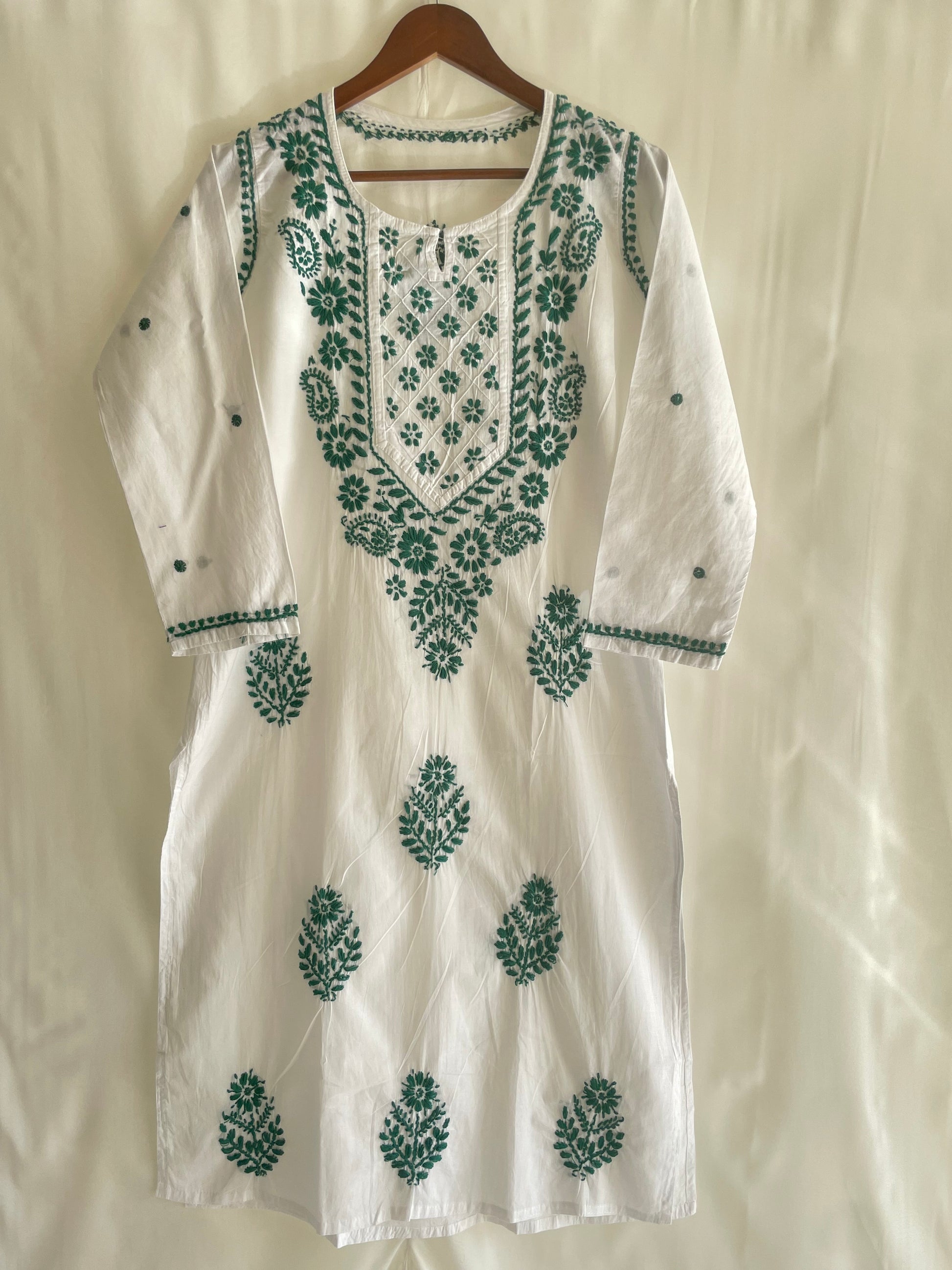 Zoya Cotton Long Chikankari Kurta ( Green)